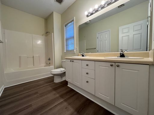 Both bedrooms include walk-in closets, while the master suite boasts a double vanity and a large combination tub/shower. The bathrooms are extra spacious, providing comfort and style.
